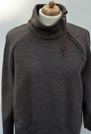 Raglanpulli mit Rollkragen oder Kapuze hintere Länge 75 cm.