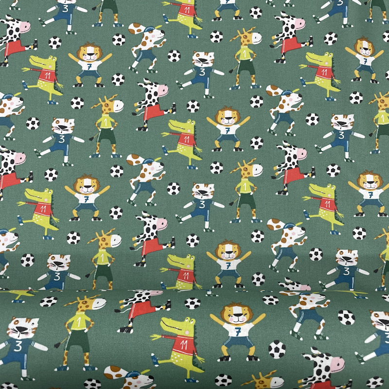 Beschichtete Baumwolle mit kleinen Tieren auf dem Fußballfeld