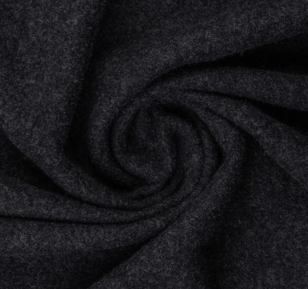 Dieser Walkstoff ( auch Kochwolle genannt ) in anthrazit melange ist gestrickt und gewalkt. Das macht den Stoff wasserabweisend und temperaturausgleichend.