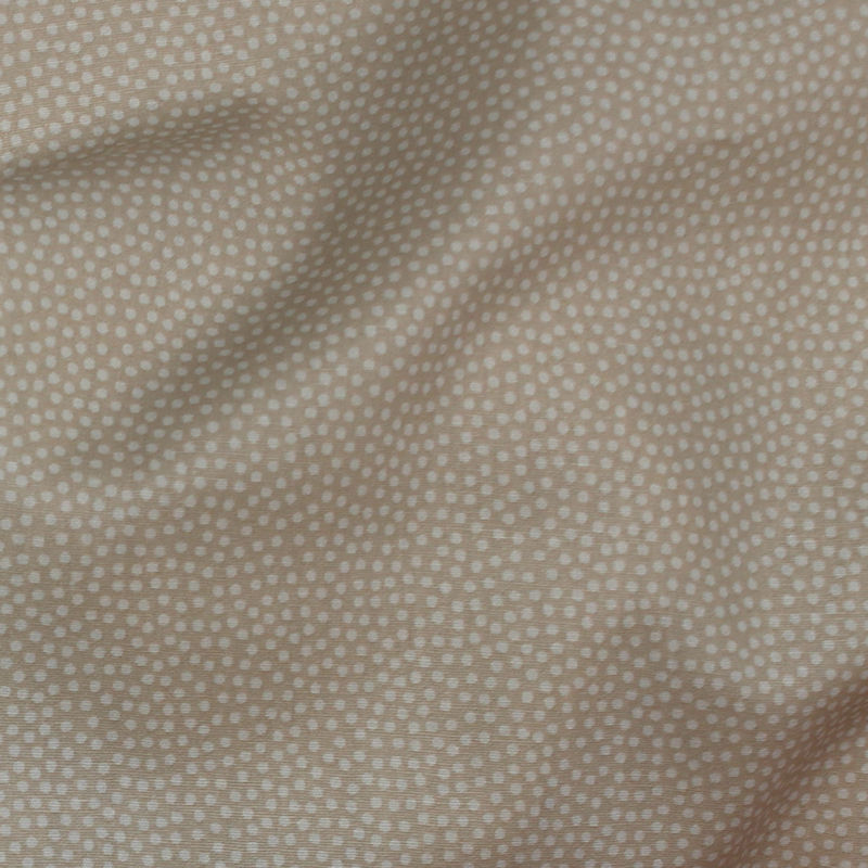 Ein schöner feiner Baumwollstoff mit kleinen Pünktchen ton in ton. Die Pünktchen in beige wollweiß kannst Du schön für Bekleidung, Patchwork und anderes verarbeiten. z. Z. sehr gefragt auch für Mund- Nasen- Masken. Du kannst die Baumwolle auch in die Kochwäsche stecken um Viren sicher abzutöten, dabei kann der Stoff auf Dauer ein wenig an Farbe verlieren.