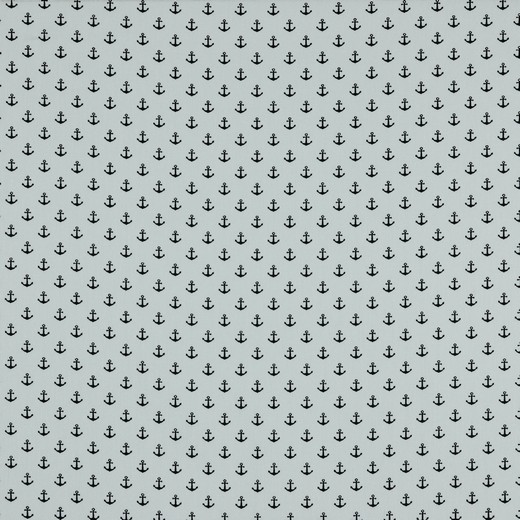 Baumwollstoff mit kleinen Ankern in schwarz auf weiß