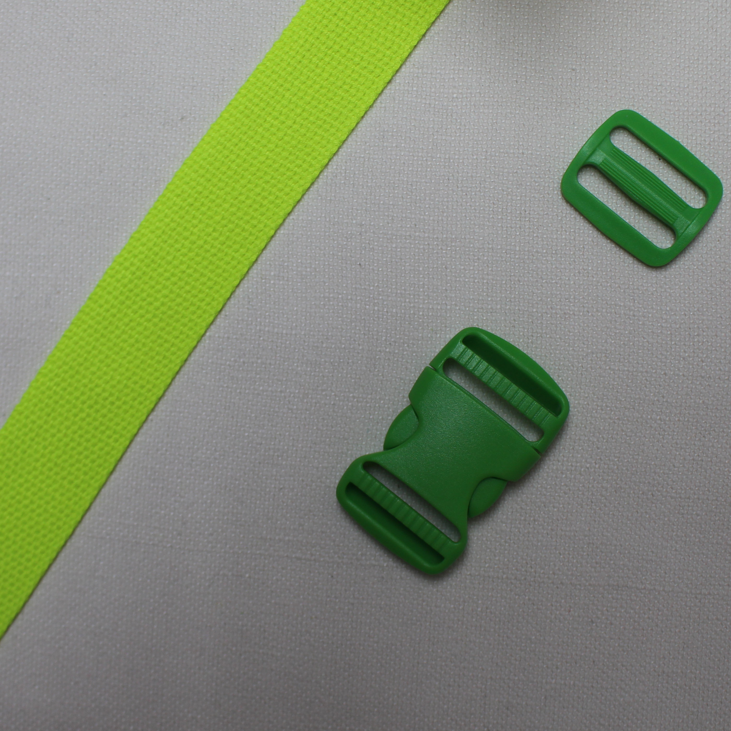 Die passenden Steckschnallen und Versteller zum neongelben Baumwollgurtband kannst auch gleich hier im Onlineshop bestellen.