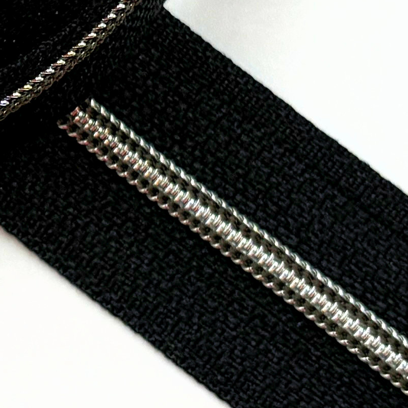 Reißverschluss Meterware mit 4,2 mm metallisieter Spiralraupe.