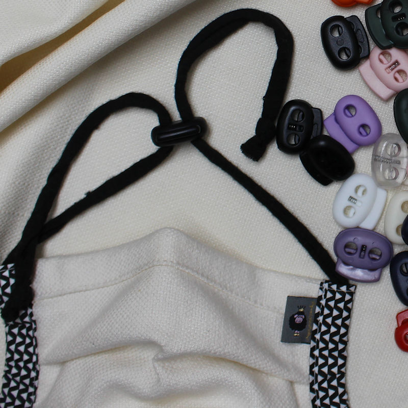 Du suchst den praktischen Verschluss zum verstellen für deine Behelfsmaske? Wir haben Kordelstopper in vielen Farben für dich eingekauft. Die Kordelstopper in pink mit 2 Öffnungen kannst du wunderbar für Jerseynudeln als Bindeband für Mund- Nase- Masken verwenden. Ich verarbeite mittlerweile gerne die Jerseynudeln, weil ich die Maske über einen langen Zeitraum am Tag tragen muss und das Jerseyband viel bequemer ist als Gummi hinter den Ohren. Du kannst die Jerseynudeln am Ende einfach stramm mit Nähgarn umwickeln, dann lässt sich die Jerseynudel oder auch Flechtkordel gut einfädeln.