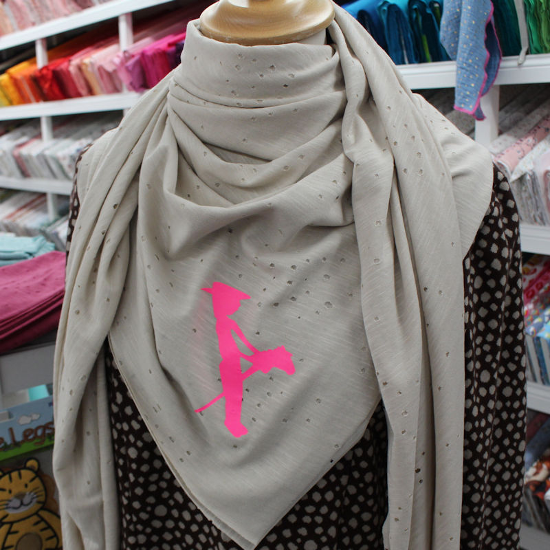 Aus diesem toll fallenden Jersey haben wir schöne große Tücher genäht. Der Slubjersey mit den kleinen Löchern in ist wunderbar weich und anschmiegsam. Du kannst den Stoff einfach zuschneiden, auch ohne die Kanten umzunähen ribbeln die Kanten nicht auf. Wenn du die Kanten ein wenig überdehnst rollt sie sich ein wenig und sieht dann sehr leger aus. Ruckzuck ist ein Tuch fertig und kann dich wärmen. Für ein quadratisches Tuch benötigst du 1,50 m von dem Modaljersey in wollweiß.