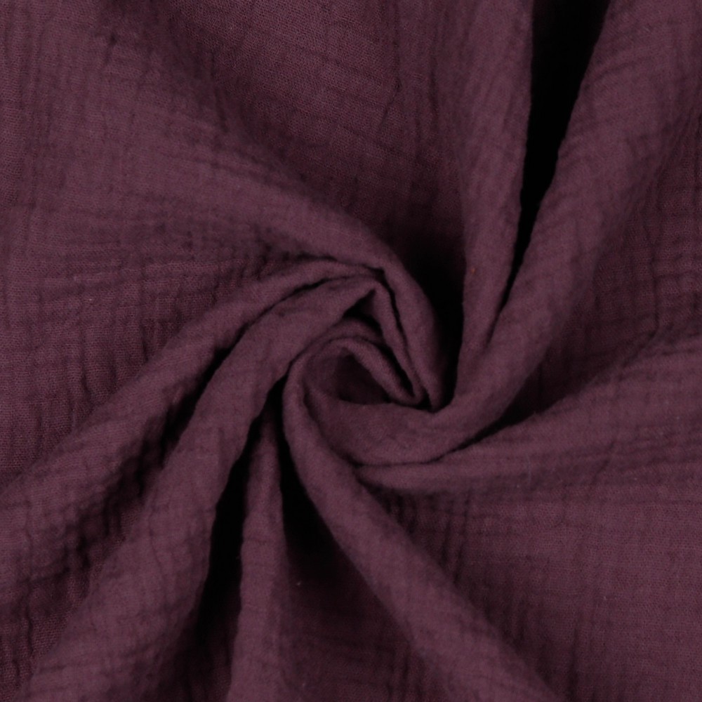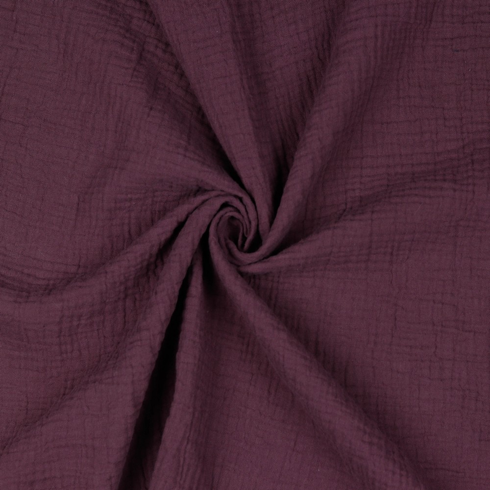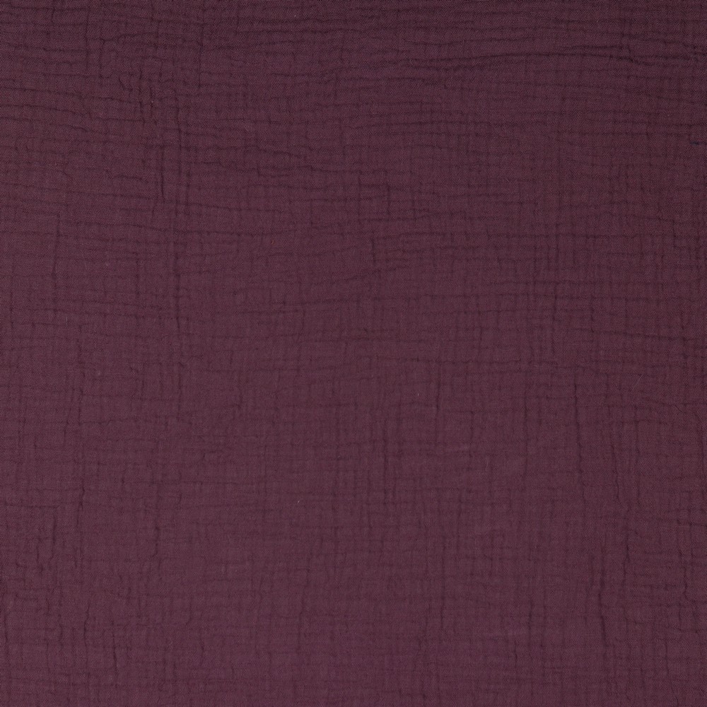 Aubergine Musselin / Double Gauze ist ein leichter und weicher Stoff mit gekreppter Oberfläche aus 100 % Baumwolle.