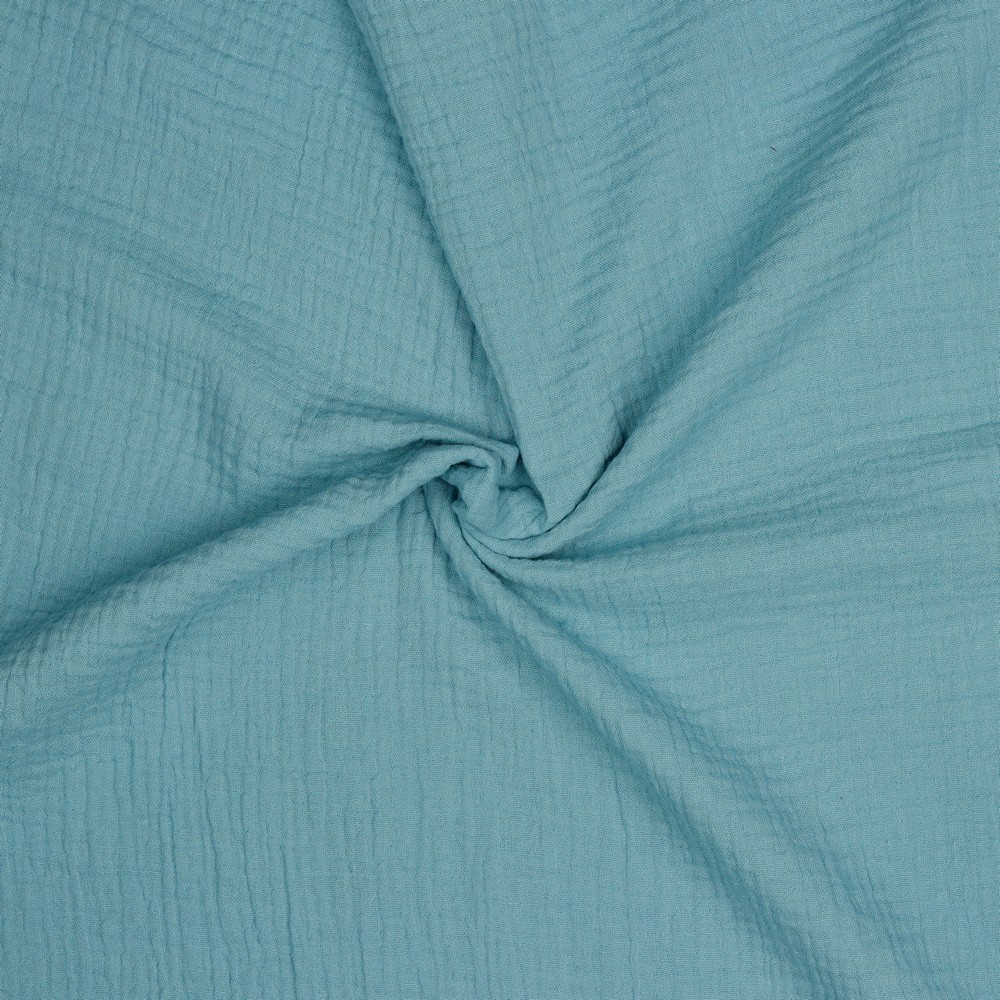 Teal Musselin / Double Gauze ist ein leichter und weicher Stoff mit gekreppter Oberfläche aus 100 % Baumwolle.