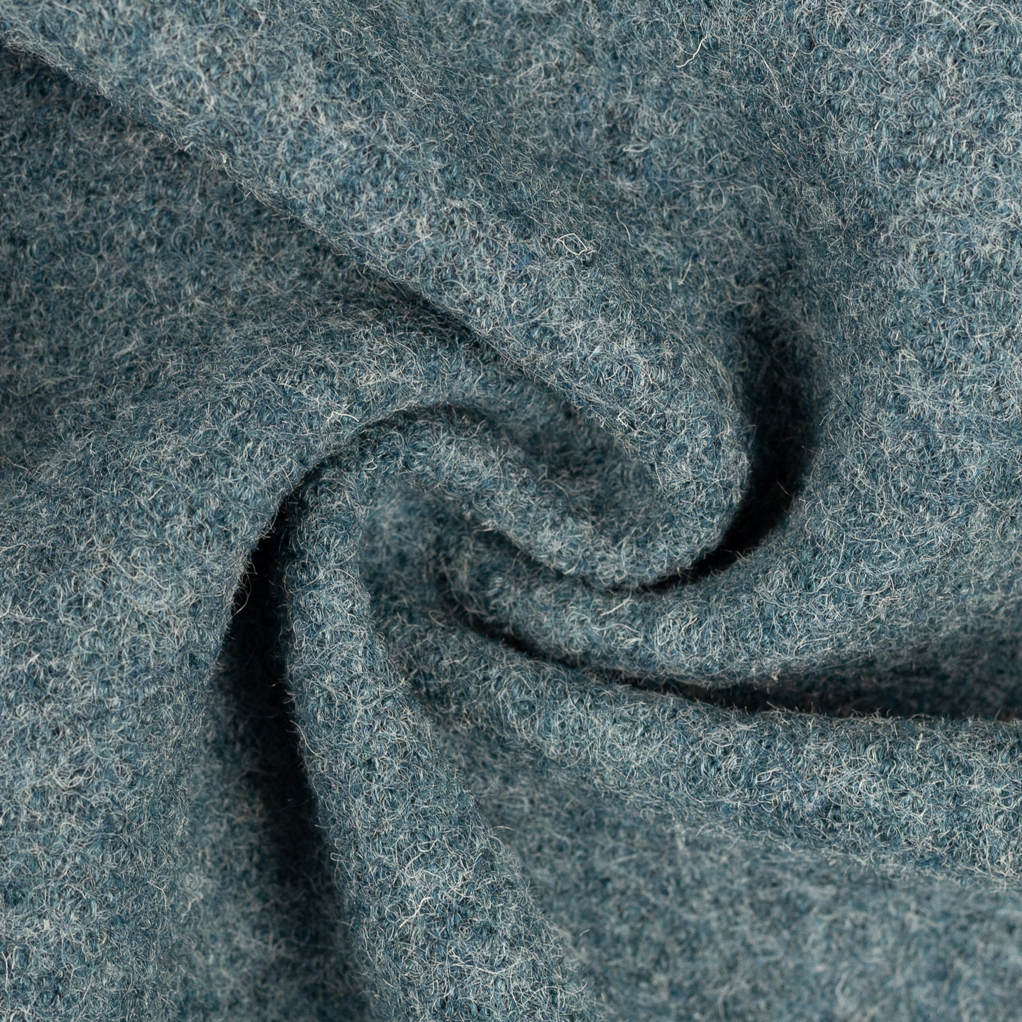 Dieser Walkstoff ( auch Kochwolle genannt ) in petrol melange ist gestrickt und gewalkt. Das macht den Stoff wasserabweisend und temperaturausgleichend.