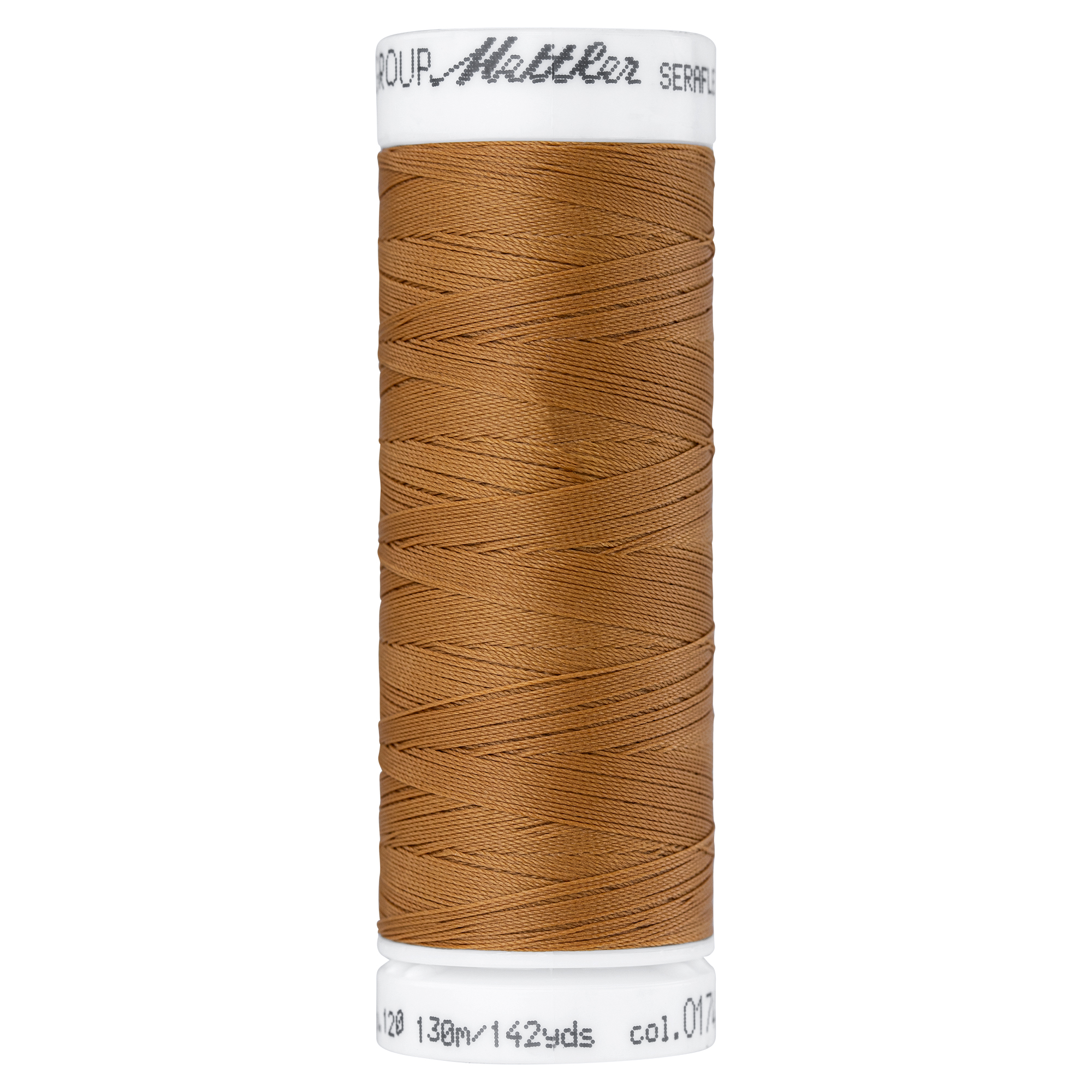 Seraflex in Farbe Ashley Gold von der Markenfirma Amann Mettler ist das passende Garn für deine Näharbeiten mit elastischen Stoffen, ob Jersey, French Terry, Sweat oder auch alle anderen Stoffe mit Elasthan.