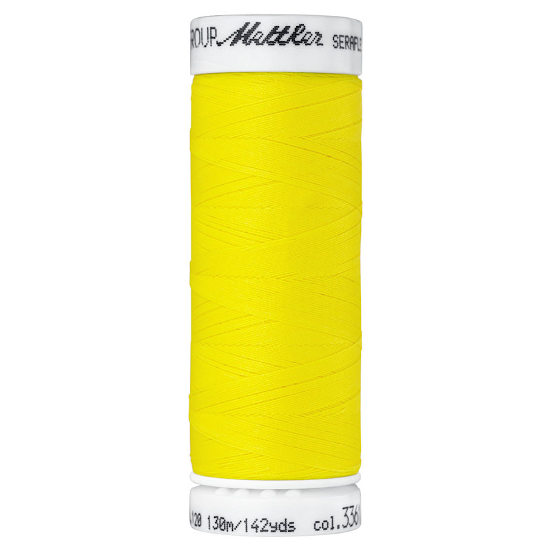Seraflex in Farbe Lemon von der Markenfirma Amann Mettler ist das passende Garn für deine Näharbeiten mit elastischen Stoffen, ob Jersey, French Terry, Sweat oder auch alle anderen Stoffe mit Elasthan.